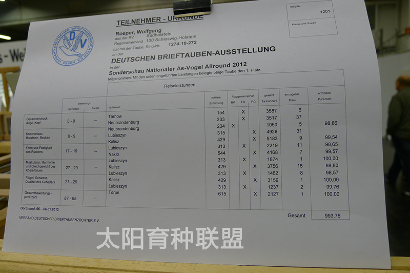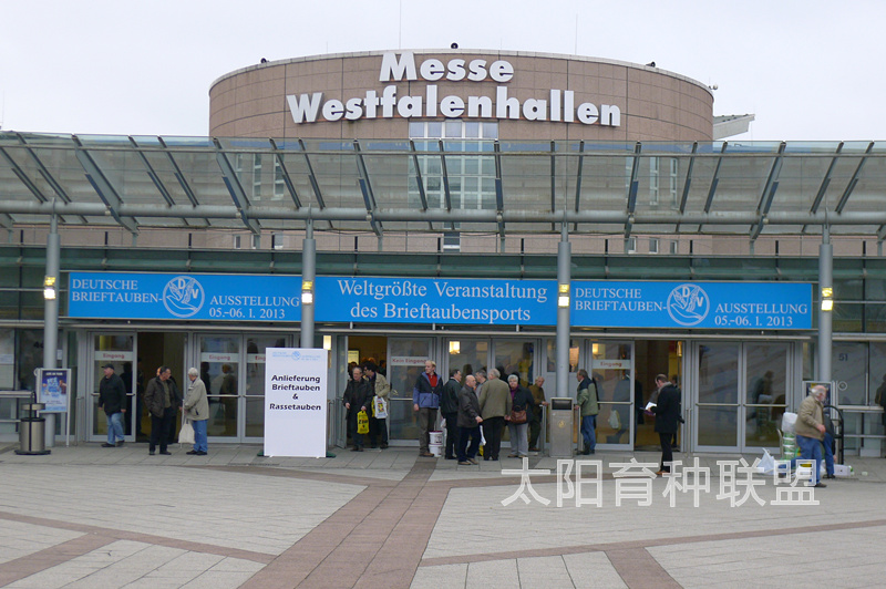 2013年1月5号-6号是太阳育种联盟参展德国多特蒙多鸽展,今年的鸽展比去年略大一些,看来欧洲经济有一定好转了。