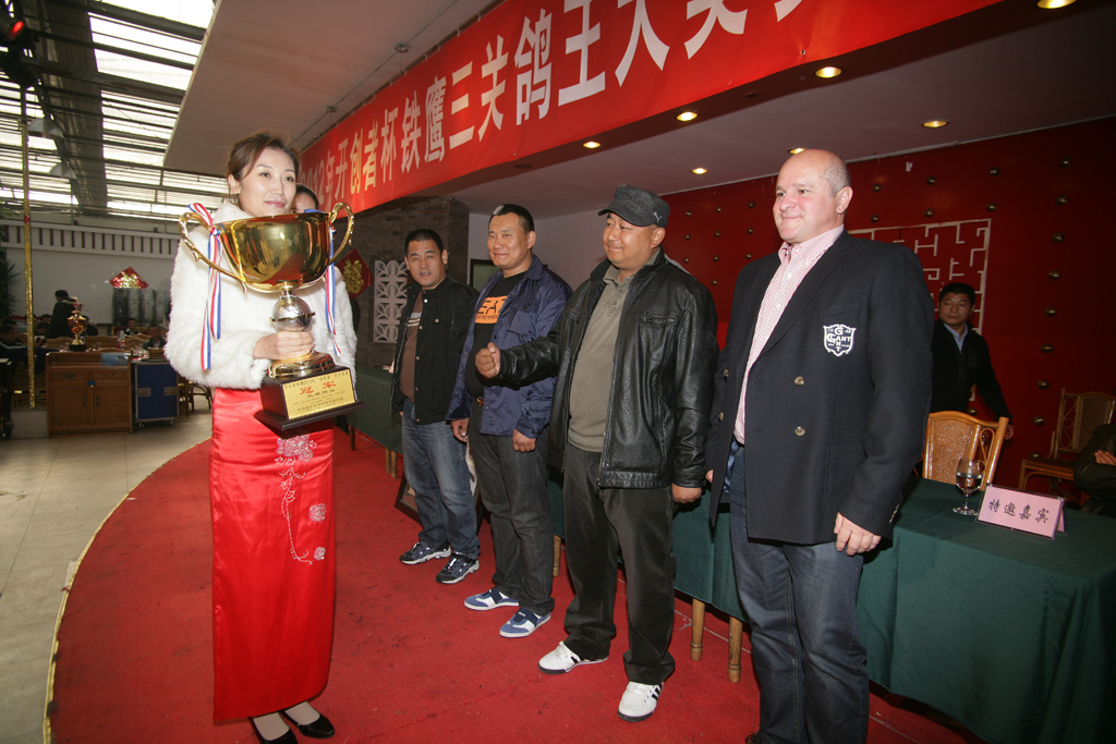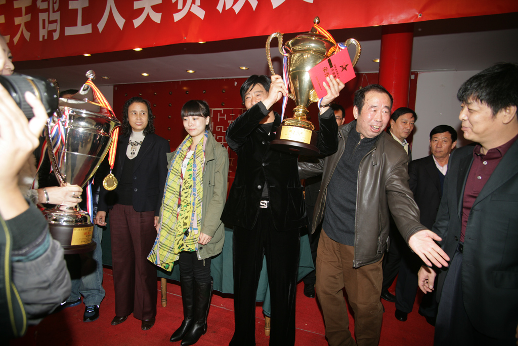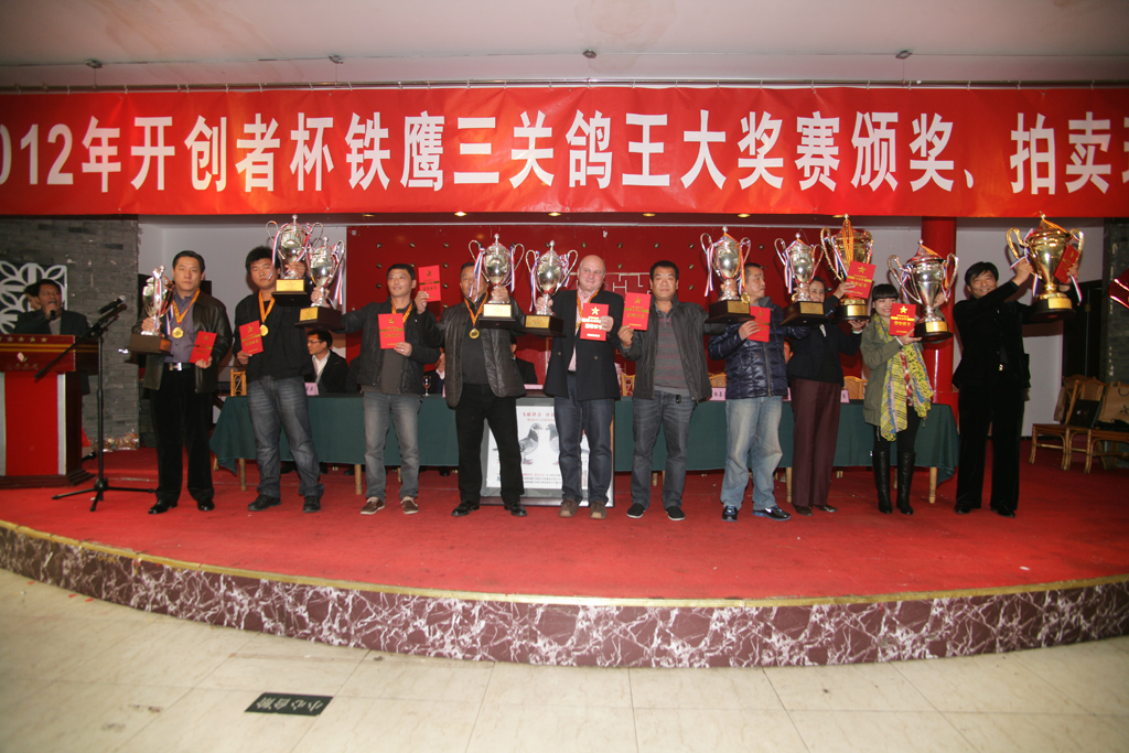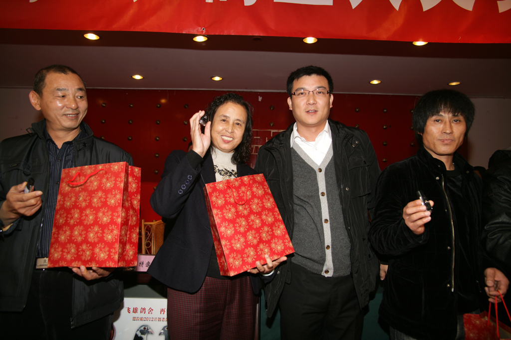 大胡子是骆玉梅吧?最好把获奖鸽友做特写并附文字介绍。高位奖鸽也要特写。乱哄哄的场面有一两个就行。