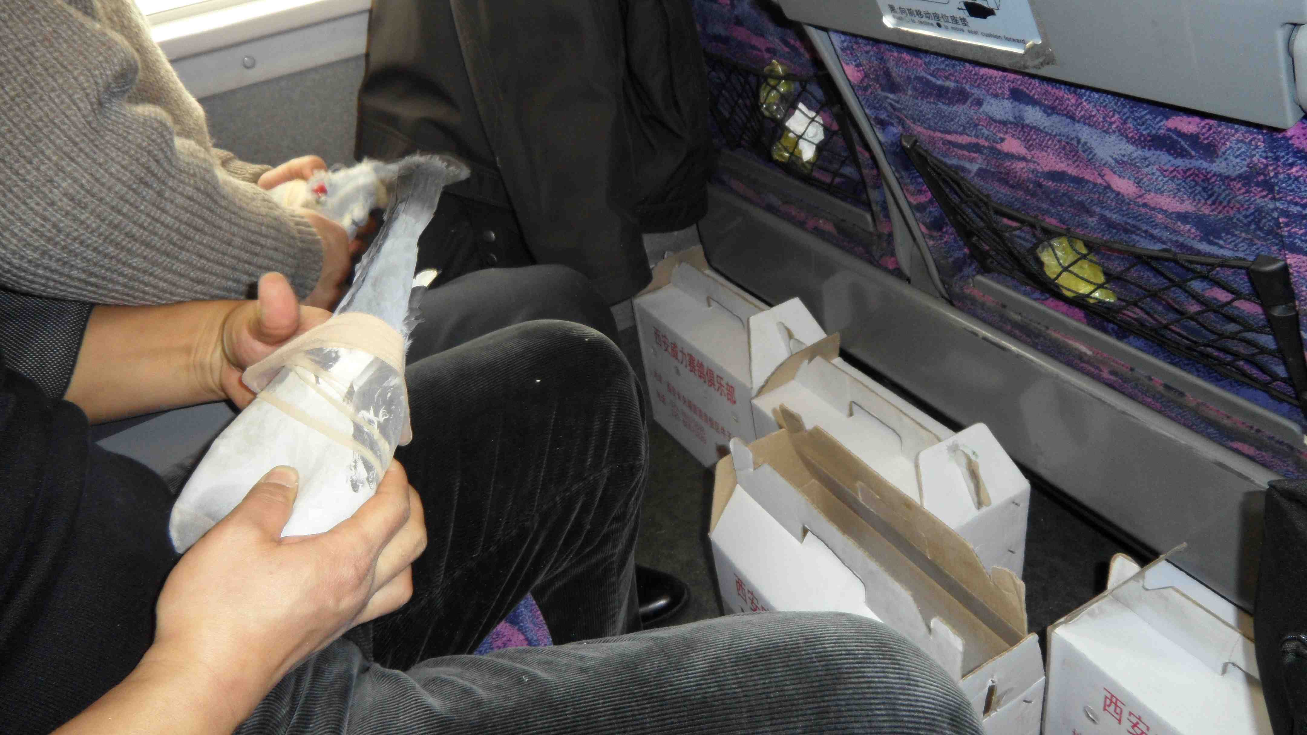 放到黑背包(旅游常用的那种)里过安检。。。安检人员如果问起,你就说是火腿肠。(一般不问)。。。。。呵呵呵呵