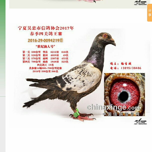 世纪油人号现在成天落了!可悲可叹!捡到了你就收留着别在中信网发,惹鸽主生气。要是不需要可以还给鸽主,鸽主肯定感谢你,如果需要你就留着自己出幼鸽别在中信网卖弄。