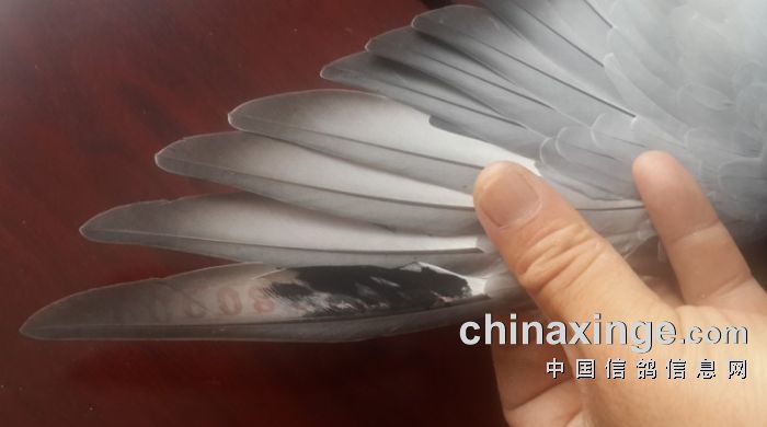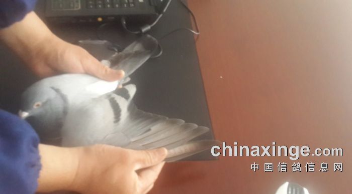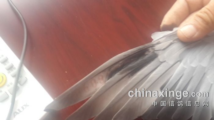 今日我棚在日常检查赛鸽工作中,发现一羽印有电话号的赛鸽,为使比赛公平、公正的进行我棚用滚章印油进行遮盖。