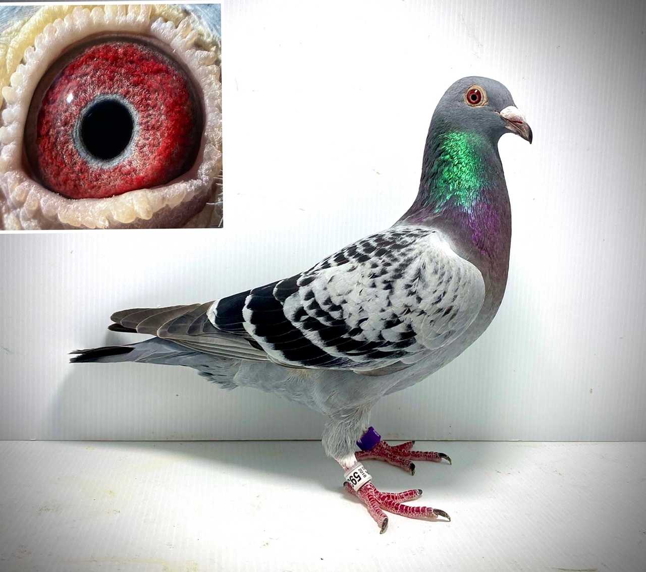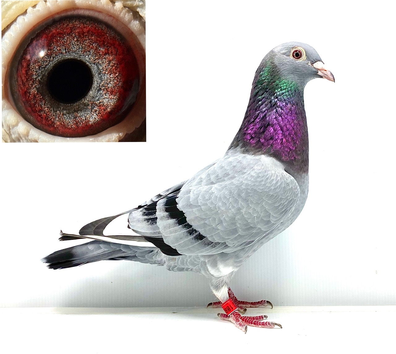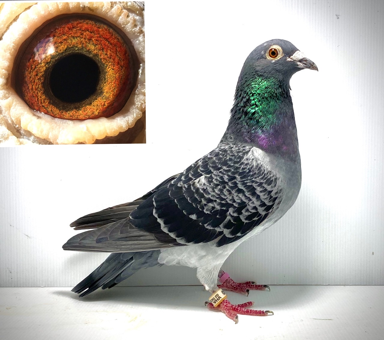 石板白条雌购回后第一次做育参赛,联合会457公里25名区域组亚军,俱乐部冠军分速836米/分,比赛日天气恶劣阴雨大风。胡本艺术家X福洛恩格斯