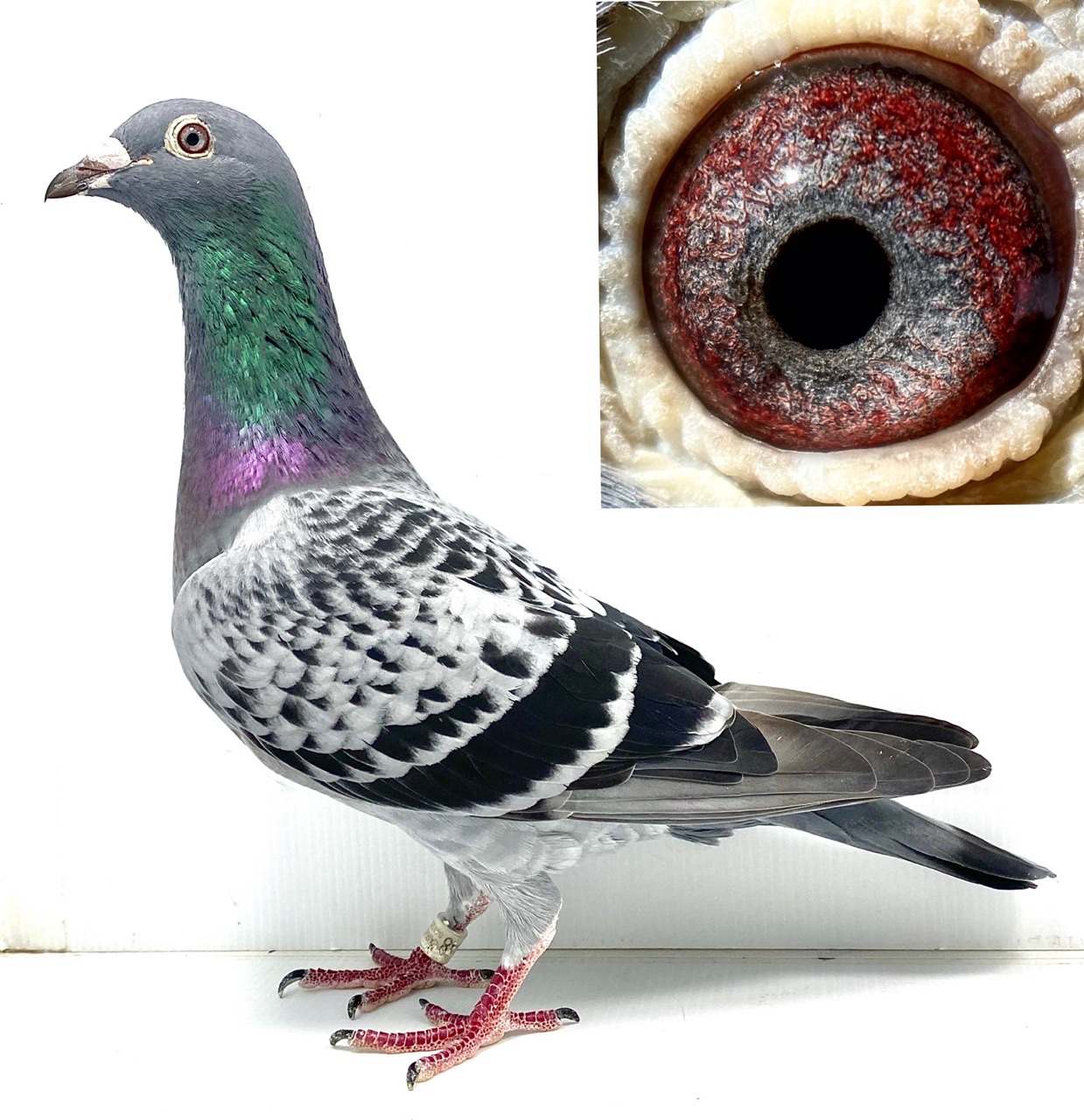 好友冠军赛鸽手Nick赠送长距离种雌,本身900公里当日归巢,当日仅有3余归巢鸽全部是Nick的鸽子,这只雨点雌鸽带伤勇猛归来,Nick留下做种并做育出很多联合会入赏后代。胡本X澳洲长距离铁血