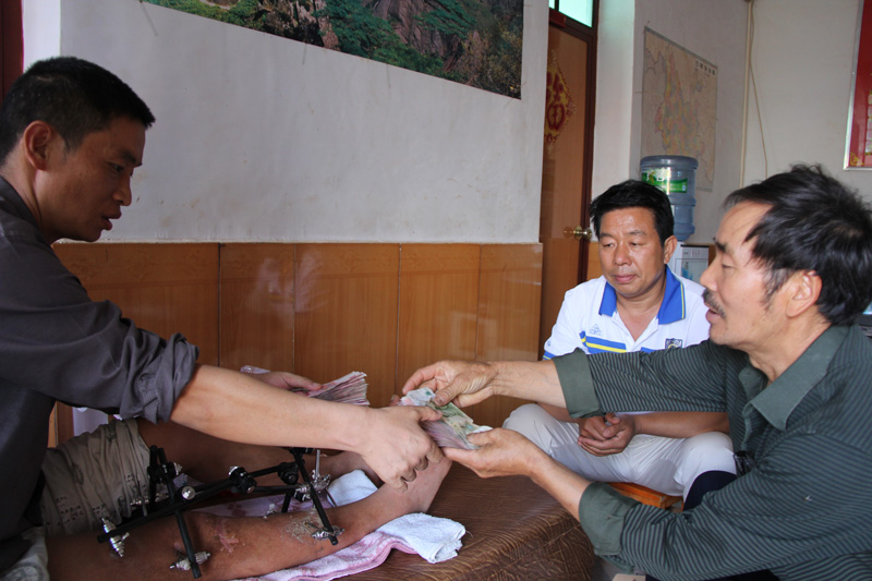 义捐现金鸽友:【现场捐款】 云南鸽友“赵勇”先生200元; 四川鸽友“张鹏”先生1000元; 云南鸽友“梁明庆”先生10000元; 其他义捐现金鸽友:【非义卖会现场捐款】 云南鸽友“何大利”【陕西籍】捐款500元 说明:此款500元捐款地址‘弥勒医院’,是本人4月27日亲自前去了解情况、4月28日探望车祸鸽友时,在病房交给彝族鸽友“陈红乒”本人。 云南鸽友“张宝安”捐款1000元! 说明:此款为张宝安【弥勒东风鸽友】捐给彝族鸽友的生活费,彝族鸽友“陈红兵”确认该捐款,一并感谢! 5月2日义卖会现场总计筹得善款26812元,【鸽子义卖款15612元,现金捐款11200元】 5月2日下午六点,中信网云南记者在场、弥勒鸽会相关负责人交付车祸鸽友陈红乒26812元!