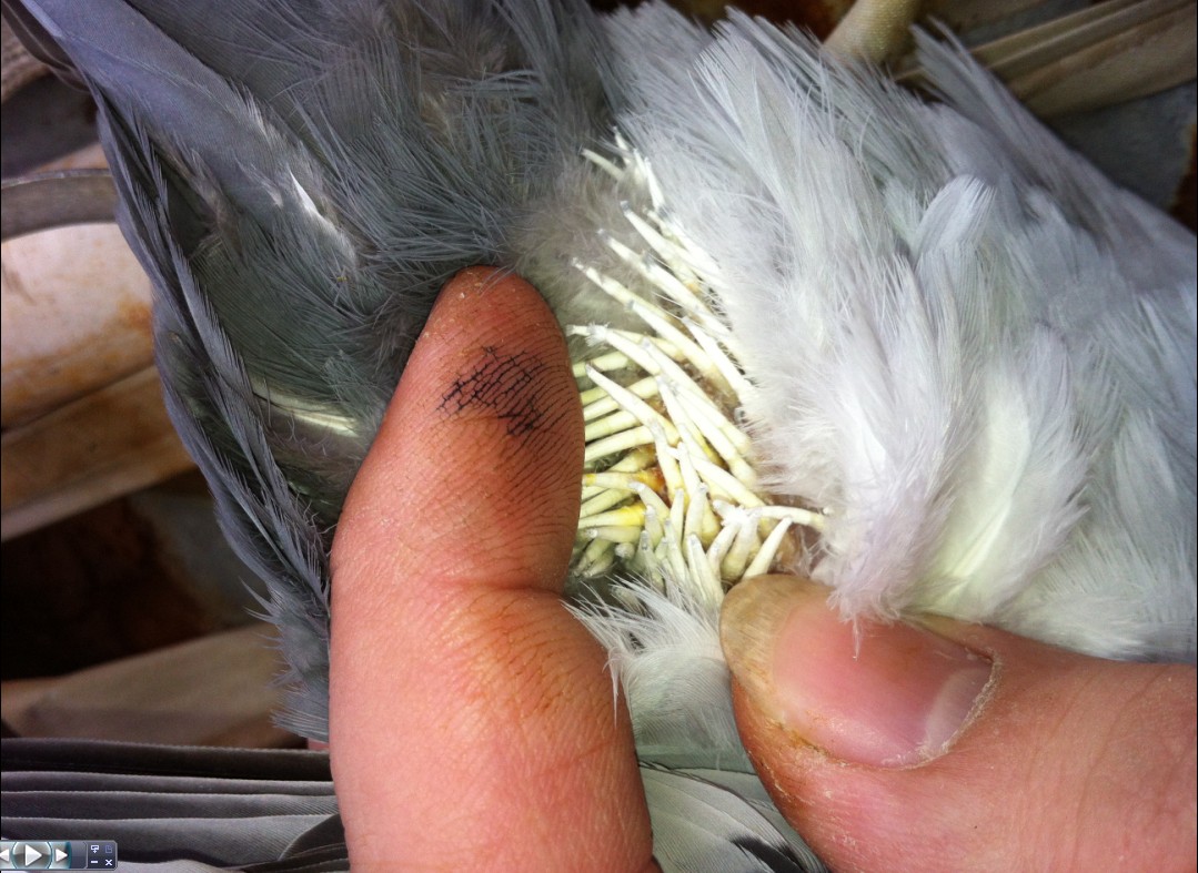 是某种虫,可以考虑用敌百虫喷洒鸽舍。