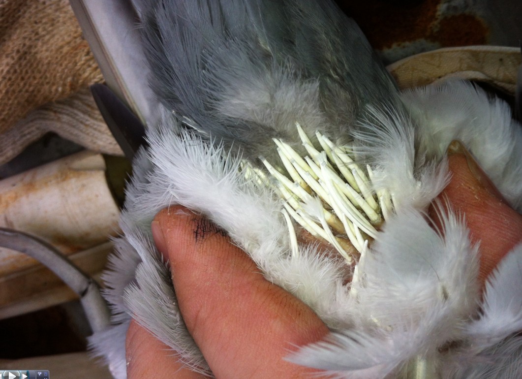 看图片可能是这片羽毛受外力后脱落重新长出的,嫩毛不能出毛囊是因为缺少维生素B,