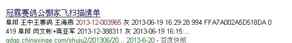 | -- 作者:鸿旺鸽业 -- 发布时间:2013-7-30 20:18:37 -- 同环号我有只鸽子环号3个相同的号,真他妈郁闷!那个是真的呢?欢迎交流我的群号259654318 |