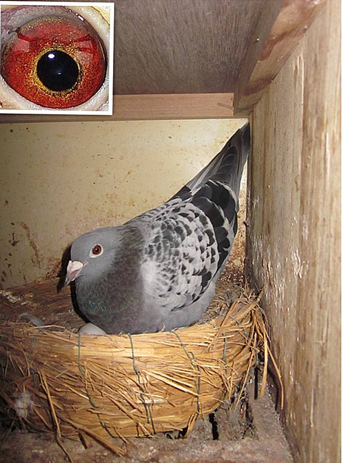 2001年的雌,正常家飞,今年控制着只让出了一窝,蛋的大小正常,都成了,自呕,雄2010年的,雏鸽15天大时移给其他鸽。她是我舍建立后出的第一只,2001-26-025351。