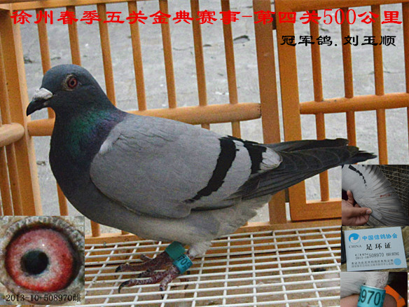 是冠、亚军是母女俩,女儿2013.10.508970雌、飞获冠军,母亲2012.10.333944飞亚军。而且女儿眼沙、羽色都继承了它娘的遗传