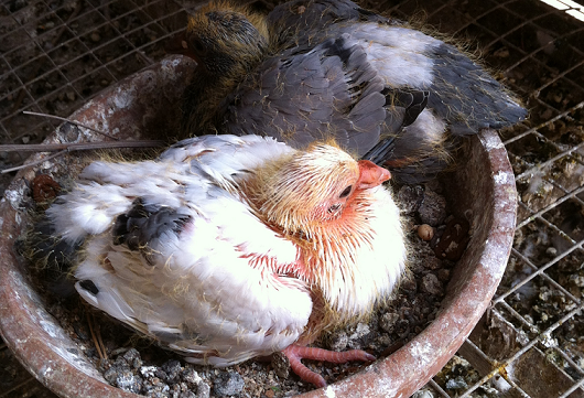 雄鸽去年配的台鸽,后代外观极为漂亮,参赛后三站内全部飞失。因台鸽后代原来出过成绩,考虑雄鸽问题,本打算淘汰,又觉得可惜,今年配公棚的雌鸽,入秋赛仍无起色,坚决淘汰。