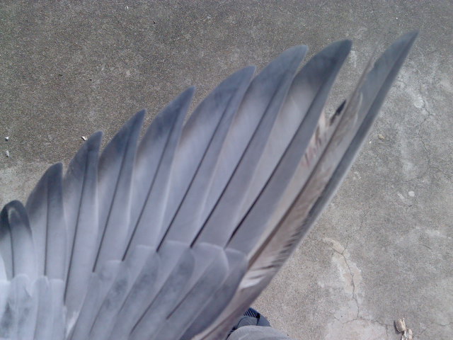 不能拔!拔掉大多不长或长成“葱状”。成了一根废条!更加影响飞行。 这种情况,我家鸽子多次出现。有时在第九根,也有第八根。 你的这个鸽子这根大条永远也不会换成新条! 我多年的观察是:遗传!有一定比例的遗传。 最早,是一个99年鸽子,引进第二年,第九根大条不换,我拔去了,长了。后代多次出现,拔过,没有一例长成! 我想,是一种可以遗传的病态。
