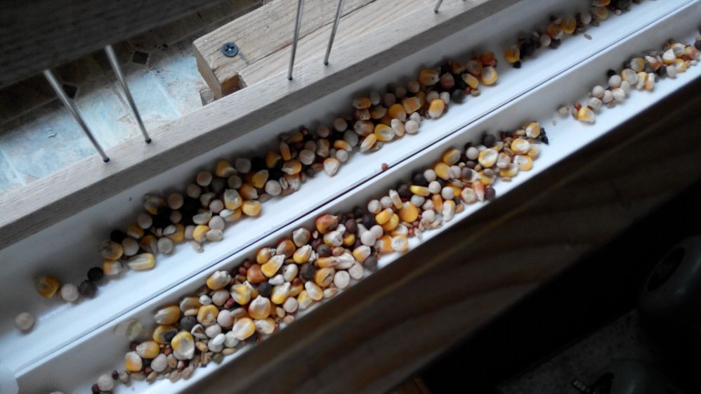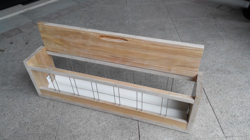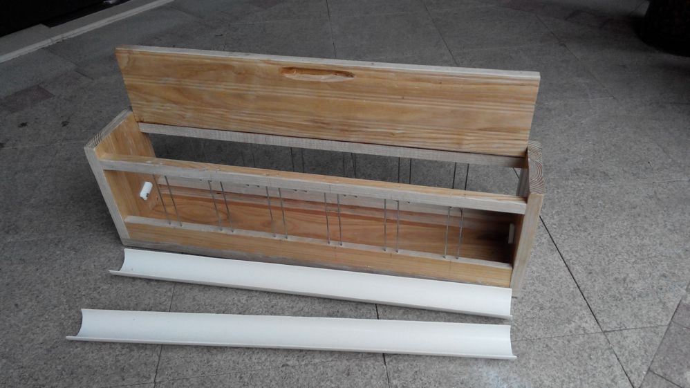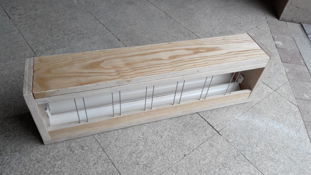 网店里很多食槽,比俺这个好,比较便宜,俺这个食槽按新板材算价格,也不便宜哦:3块原木地板就100多了,只是废物利用就不计价格了,