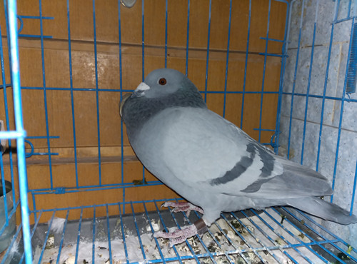 | -- 作者:WGQ6468 -- 发布时间:2014-12-13 16:09:12 -- 公棚鸽500决赛当日进我棚 昨天晚上10:00进鸽棚,发现进一羽灰鸽,电子环、易碎贴,飞累的样子,精神还可以,明显是公棚的鸽子,网上查了一下,附近今天有北京玉翅通达和北京源翔克劳沃两家公棚比赛,当日名次已报满了。 打开易碎贴,根据足环号一查,是北京源翔克劳沃公棚的鸽子,那个公棚离我棚10公里左右,已经飞到家门口了,为什么进别人的棚?!难道它不愿回到公棚,选择自己满意的地方留下? 这只鸽子放飞已无意义,回去也是迟归鸽,既然它选择了我的棚,我会给它生存的空间。 |