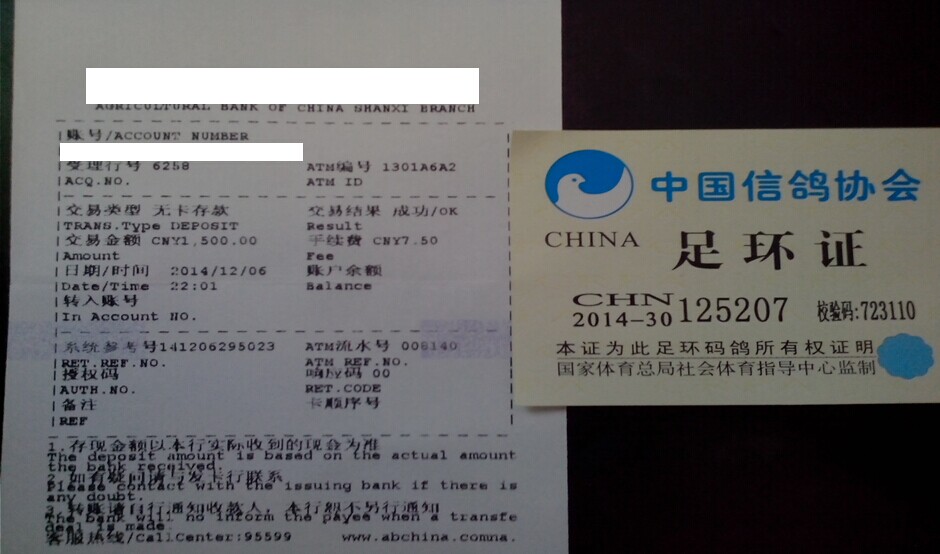 汇款的鸽友都要传真汇款图片,不如和足环证一起发到公棚。