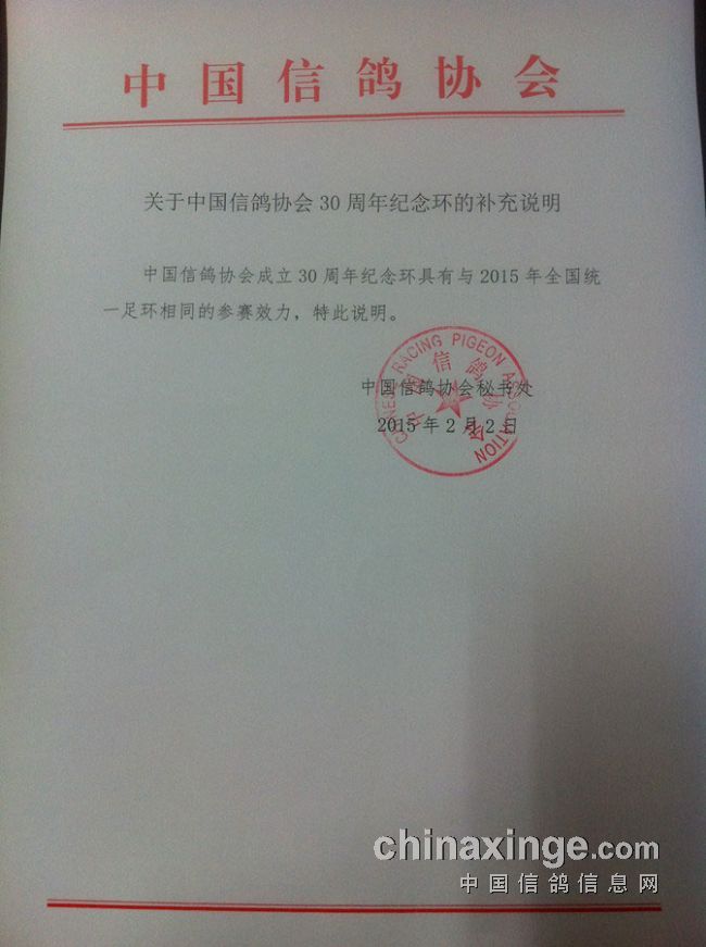 2015年发下来本身就是个错误,30周年纪念环应是14年,你写15年不就成了31周年了,中鸽协净整没用…