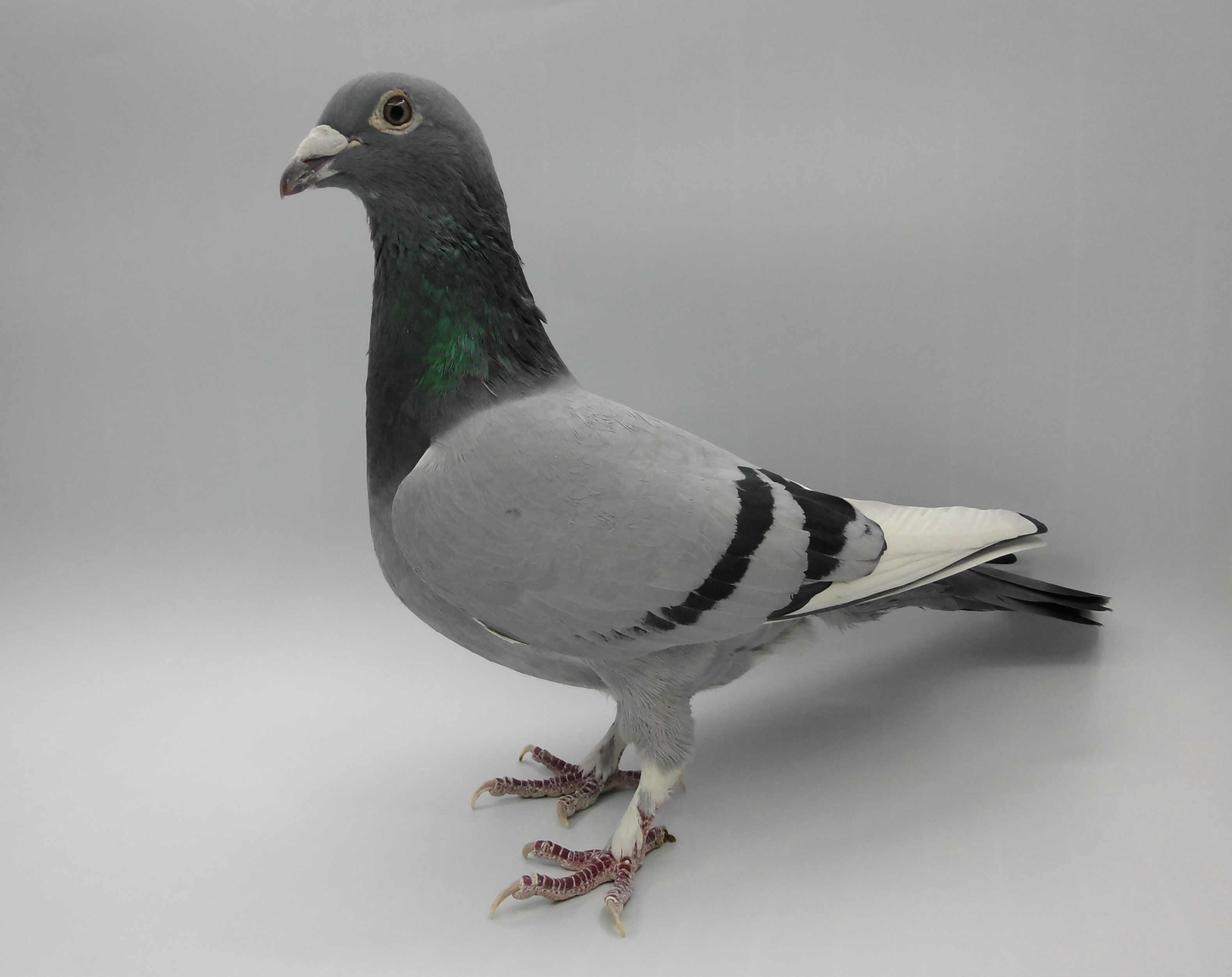 此鸽为2010年母鸽,1岁时500公里比赛未归,三个月后飞回,环被剪了,报着试试看的想法留下做种,没料想育种效果很理想,做出多羽公棚高位,今年出鸽子继续交,希望好运!