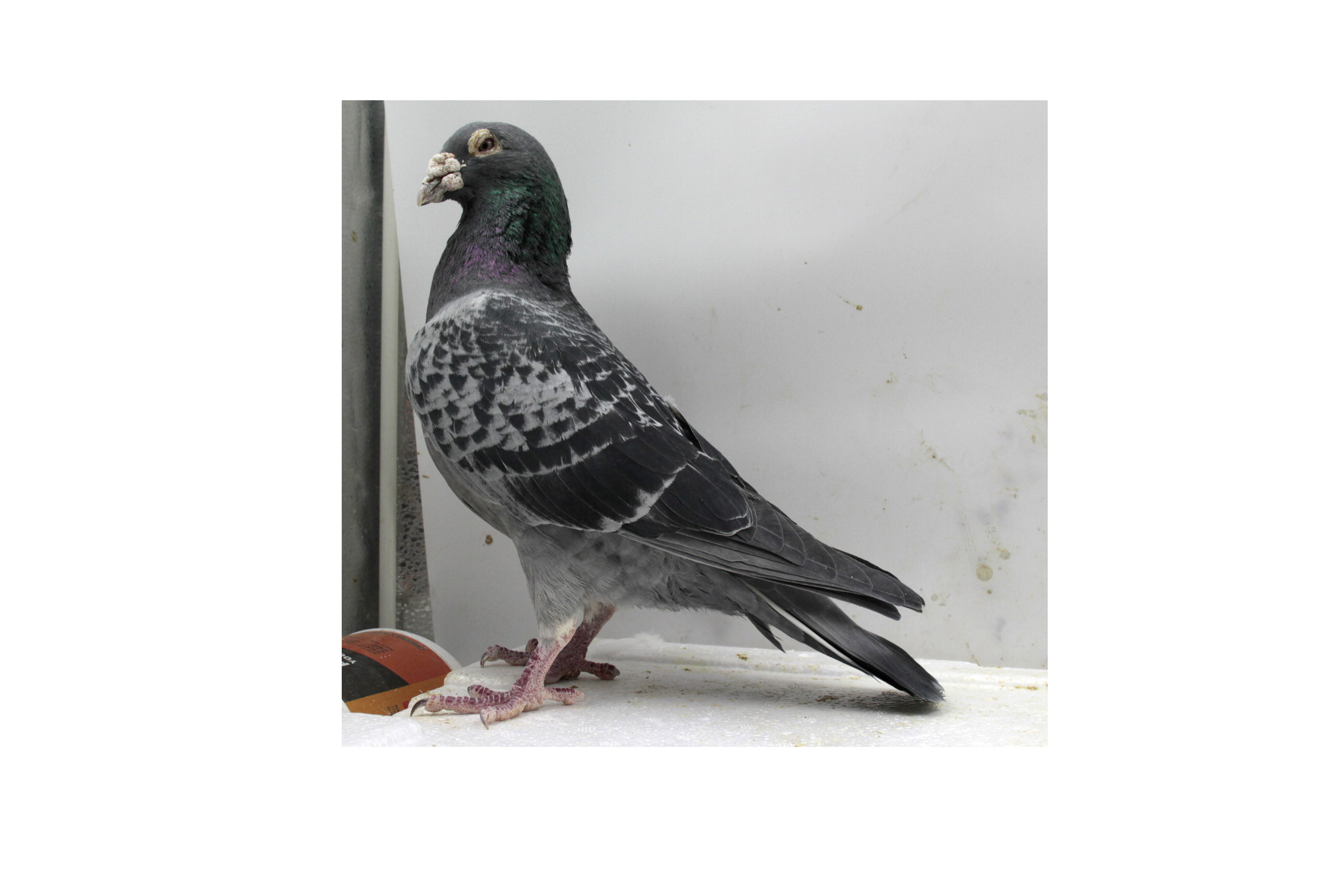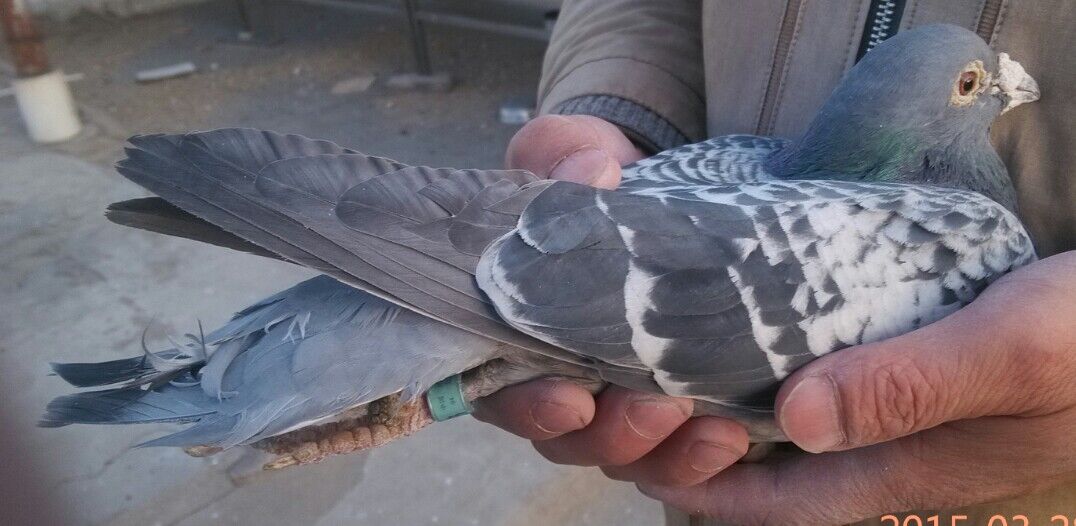 这鸽子是94年6月出生,是河北省秦皇岛赵爱国(93年1500公里全国冠军得主)送内蒙鸽会秘书长樊荣老师的,95年出的小鸽子樊荣老师送给他的学生,在内蒙古呼和浩特市鸽会500公里比赛飞的5名、18名、23名、96年冬天我引进,97年出小鸽子交北京卡普预赛飞23名、决赛飞117、193名。我是96年冬天开始养的他,一直到现在,他一生没有上过天飞过,