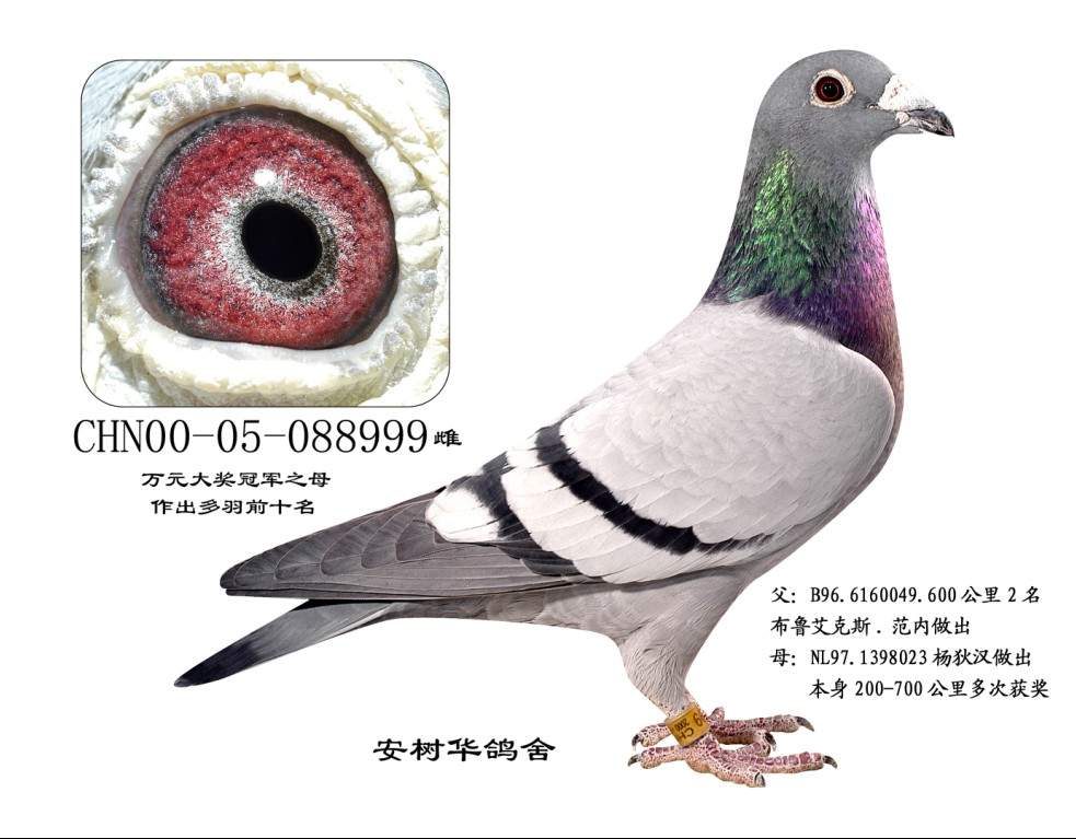 如果细细的说血统:桑杰士就是他T2002-116356x2000-05-088999出来的一羽小体型雌。088999直接出过我万元大奖赛的冠军,领先亚军27分钟,