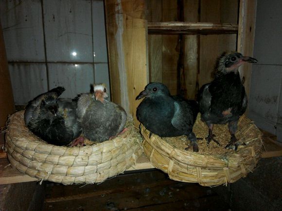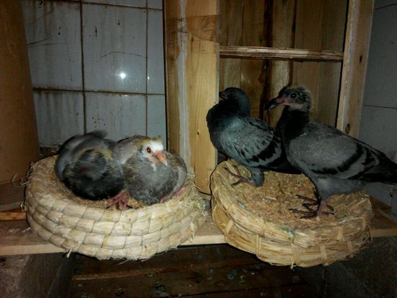 和朋友出去玩几天回来,一回来就习惯性的跑去看鸽子,一路上还哼着小曲若无其事的,到鸽棚一看!傻眼了,怎么少了5只鸽子,有两对还哺育着雏鸽,看着巢盆里四只嗷嗷待哺的小鸽子,气不打一处来,问了爷爷才知道前天家里面来客人,别人和爸爸开玩笑说杀鸽子吃,我爸又特别好面儿,果断捉了5只杀了,其他的抓不到,被杀的都在育雏,在窝里特别好抓,也没考虑前因后果,直接下锅了,回家差点和我爸闹僵,经过一番理论补偿了1000元钱,才得已平息、现在剩下四个小家伙不知道该如何是好,21天大不知道会不会自己吃食,能不能喂活也不知道,哎又没好日子过了!