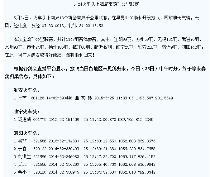 恭贺宿迁吴非喜获千公里第一和第四的好成绩。