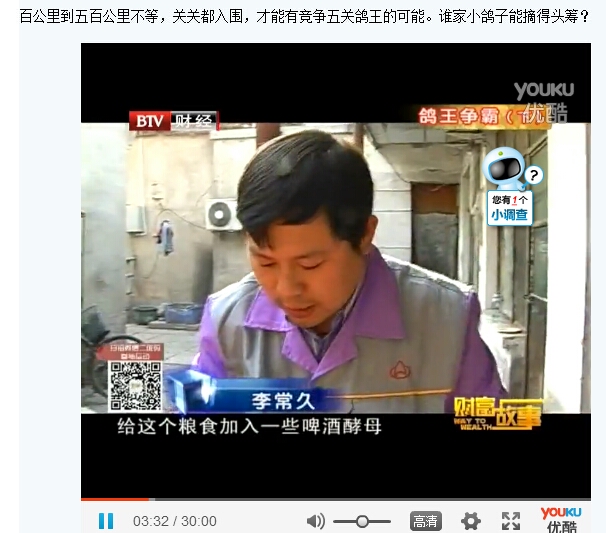 -- 生鸡蛋拌料是BTV财富故事:鸽王争霸