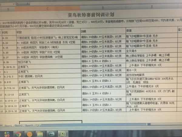 -- 菜鸟秋季饲训计划 请老师们指点