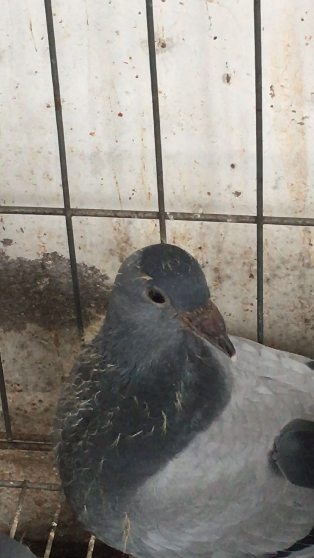 我在我们这里肉市上,卖到过一只,这样的鸽子,腿也是黑的,,被我喂疫苗水喂死了,是小鸽子,没足环,