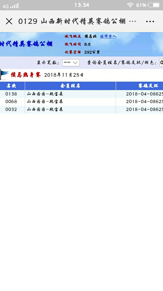 上笼三羽入围三羽,看看人家,一共回来281羽,入围35羽。