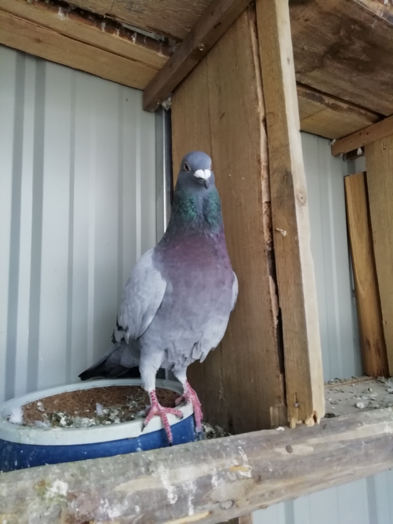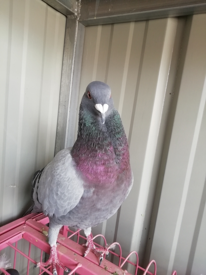 半年前从一老鸽友那里买进了一只无环灰雄。老鸽友扬言,这只雄鸽子只要不死,早晚还是要回来的。这只雄鸽子,体型很大,上手很轻,表面看上去,威风凛凛,却被小母鸽子追着打。始终配不上对,就这样养着。半个月前老爸的同村鸽友上门索要,老爸舍不得。老爸坚持认同好鸽都是有个性的。老是关死条笼,老爸担心鸽子被关坏了,这不用胶纸粘了5根大条。散养一段时间,没想到前几天一开笼,此鸽一飞冲天,径直向东飞走了,一边大条胶纸不知道啥时候不见了,原鸽主离我家东边30公里。老爸惋惜心痛。准备让我过几日去把它弄回来,不曾想今天下午居然回来了。经过这次折腾,我认为应该可以配对,这能算开家成功了吗。老铁们,说说你的看法。