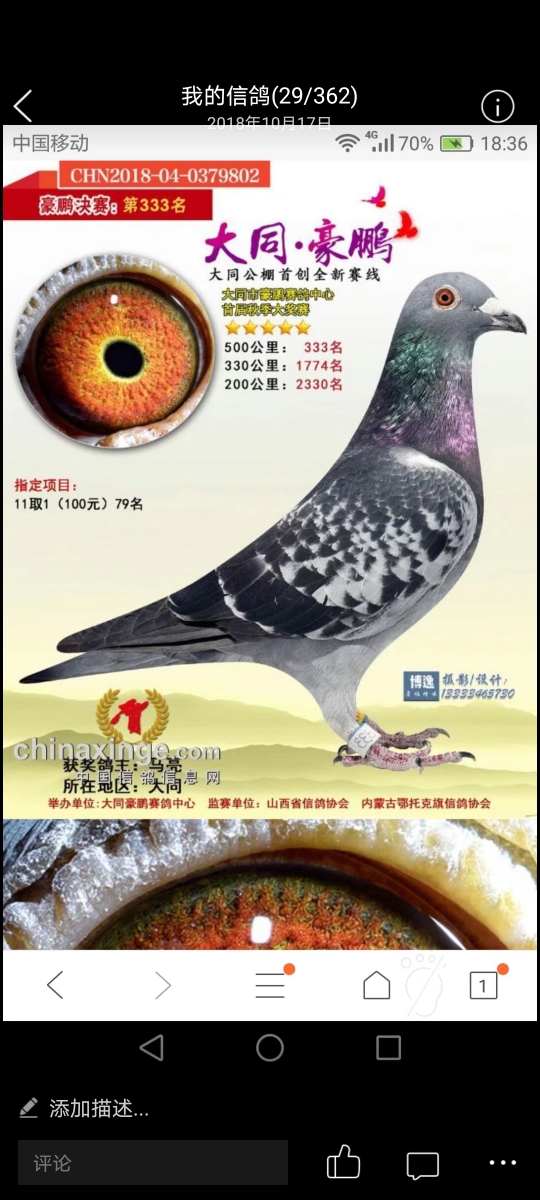 信鸽比赛本来是一项特殊运动员参加的体育运动会,设置一定的奖金无可厚非,近几年随着人民收入水平的提高,赛鸽俱乐部、公棚也把参赛费逐年提高,由此就出现了采用各种各样的手段去作弊获取高额的指定奖金。更有利欲熏心的不法之徒在赛鸽归巢途中挂设天网捕获前面飞行的冠军鸽!这种种丑陋的行为都是由于高额的参赛费、大奖金吸引着这些不法之徒以身试法。在此呼吁我们的中鸽协能出台一个多级别的标准化规格来限制各级俱乐部、公棚的收费,加强裁判员团队的管控法规,让养鸽人从自我做起营造一个透明的、干净的赛鸽运动环境,给信鸽运动一个和谐温馨的发展空间。