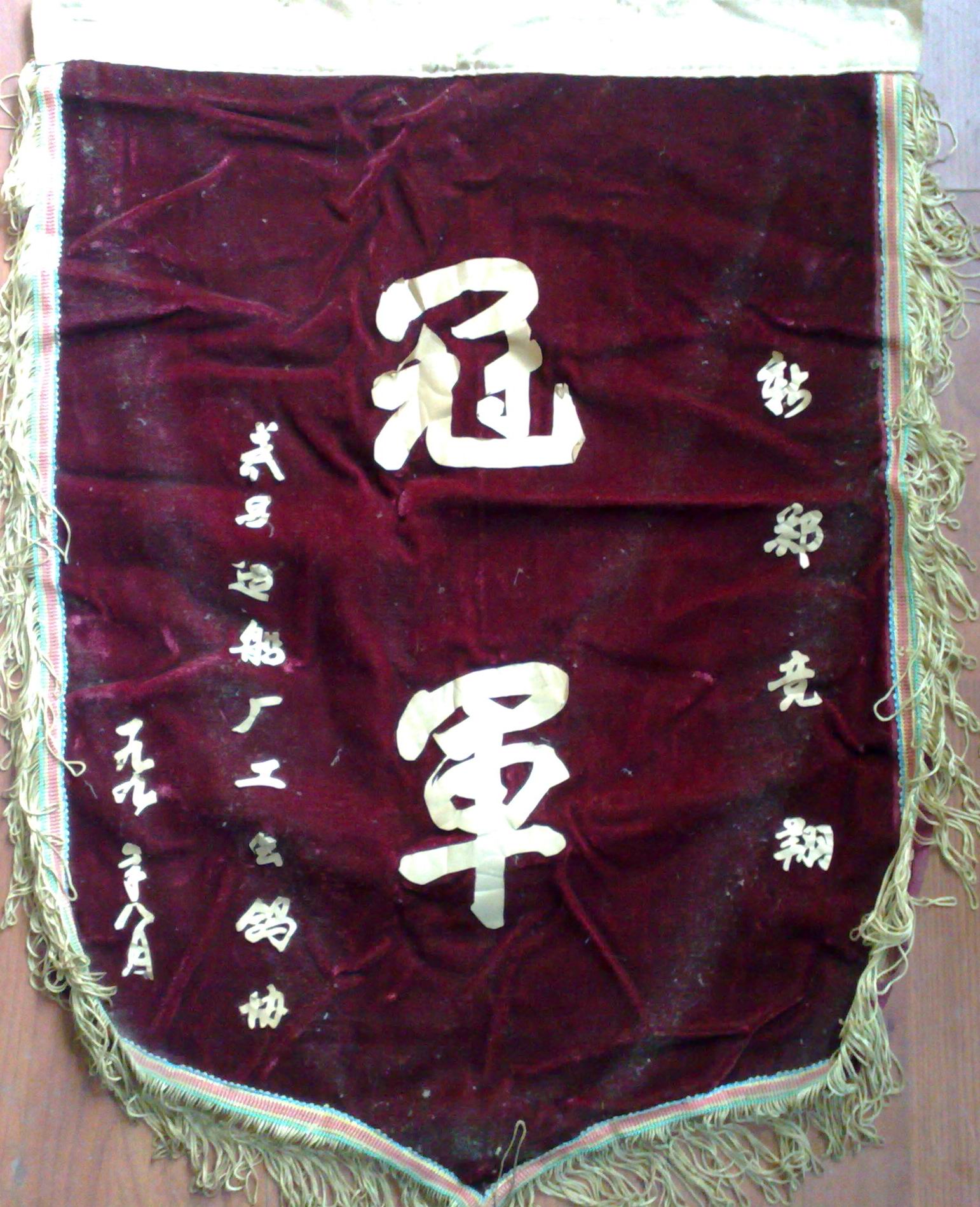以下是引用天马在2011-9-30 20:44:24的发言:哈哈~~ 这窗帘布还留着呢~ 今年要整他几个新的啦~  我以为早仍了,因为87年新郑6,7名的锦旗很早被家人当了抹桌布,所以干脆将锦旗仍了,同年的全省500公里雌鸽组二名的奖杯一直保留着在。最近家人清理老父的房间,才发现这些东西。 锦旗一挂沾灰就不好保留了。