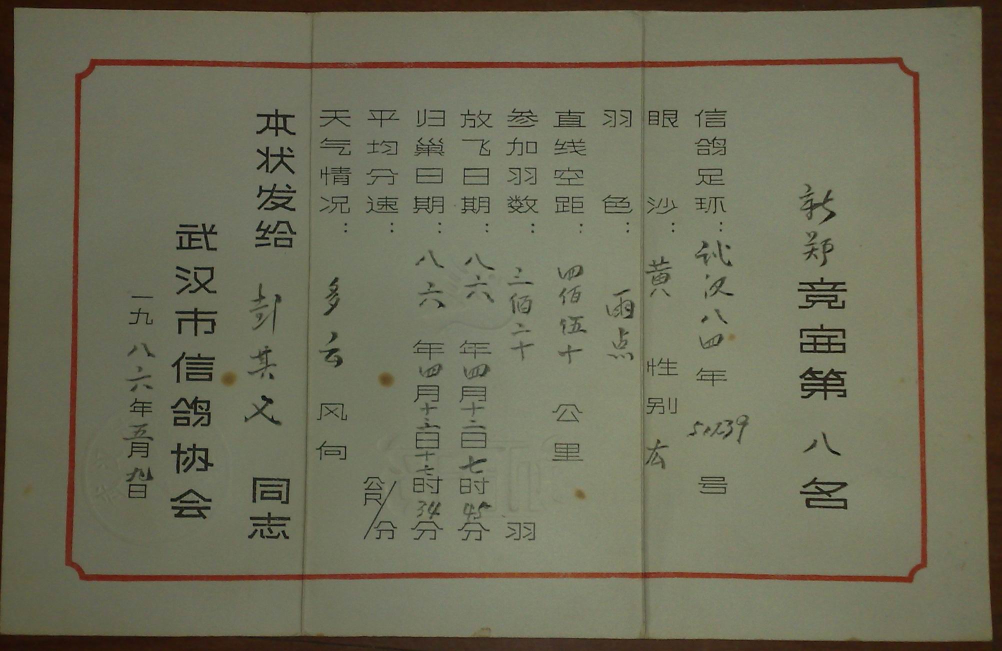 这才是真正的箱底货!它记载着我首次参赛的历史! 我老父04底入会,以前从没放过500公里,正式比赛是由我06年春开始,参赛一直沿用我老父的名字,直到91年才开始换成我的名字!