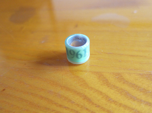 | -- 作者:hello -- 发布时间:2012-9-8 14:23:11 -- 足环摘下留作纪念:环号—CHN1999—15—191961.当初是我亲手给它戴上,如今又是我亲手给它摘下。它的一生结束了,十分感慨。