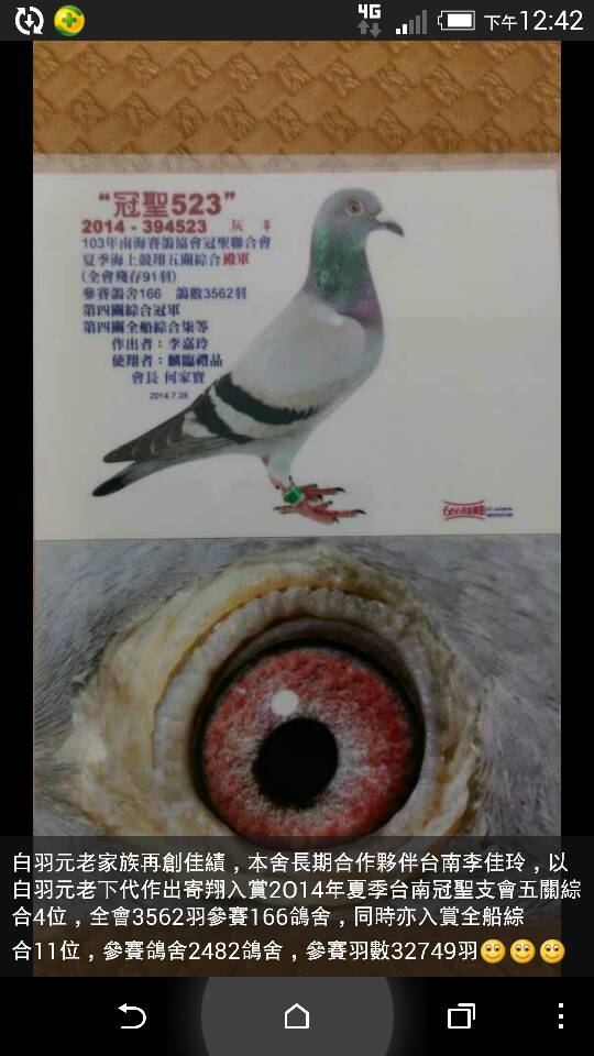 我棚里就有一羽台鸽,发挥的确实不错