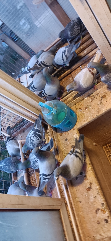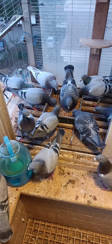 这里有11只刚飞完500,有2只连飞4次500了,月份小再有相对多点,25只没有一对,(如果成就把雄关起来,我这里母子多)所以都放一起养了,都是地方赛,养一年了,北阳台还不是顶楼太难了,鸽子一天就飞10几分钟,哄就落同楼其他阳台,结果是哪只飞回来都趴个20几秒再跳笼进屋。看着好惨!就2平米多一点的地方养30只左右愣是没得过病也没吃过保健药,太让人意外了,就是天天早上得收拾下卫生,每天都要换水,一年的阳台养鸽告诉我,如果在阳台上养只能养个10多只种鸽然后送小公棚,应该至少飞的比我训的要好得多,飞500基本没问题,如果飞得好找个地方,飞不好继续挑,至少我去年有2对种鸽出的鸽子一只没丢。我觉得我养的鸽子第一步飞回来基本没问题了,归巢比例还是蛮高的,阳台养鸽地方赛真的太难了(主要是家飞训练太难了,家飞不好鸽子定向再好没速度啊,本人一年的心得)今天晚上喂鸽子随手拍,就2平多的地方!(喂鸽子的时候突然有感就写了出来,不喜勿喷)