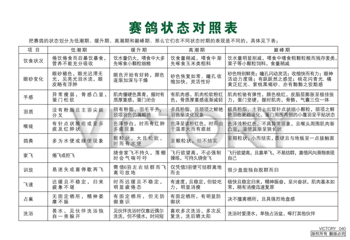 赛鸽状态对照表!